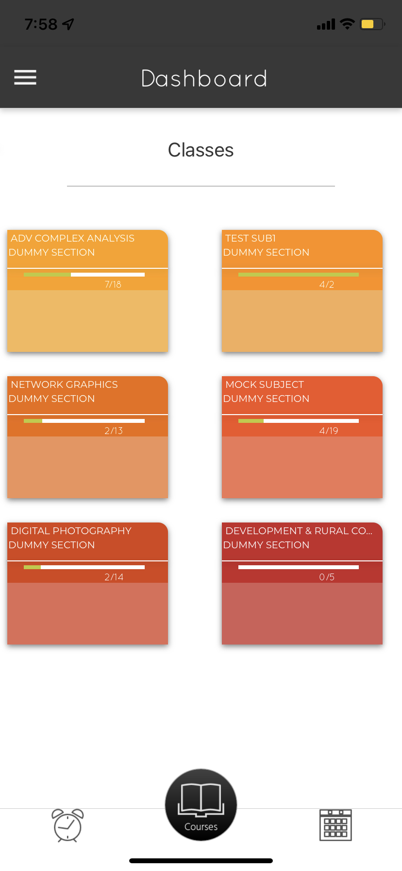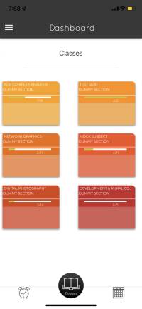 Description of fields: A folder is presented for each course. The folder is touchable and takes the user to Course Home display, which presents details of each course.