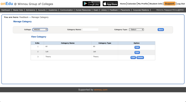Menu Navigation: Feedback → Reports → Class Wise Feedback Report