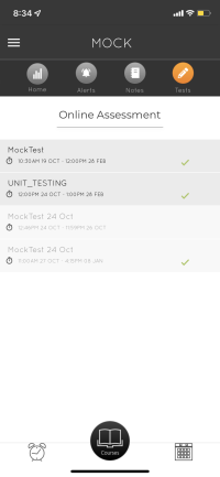 Students can take online tests(quizzes and exams) on their mobile app. Depending on configuration, students can review their previous tests, answers and scores as well, they may also reattempt a test. The tests can consist of multiple choice or fill up the blank type of questions.